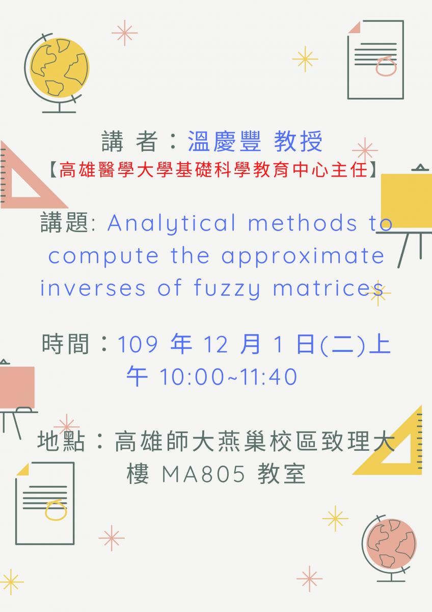 講題 :Analytical methods to compute the approximate inverses of fuzzy matrices